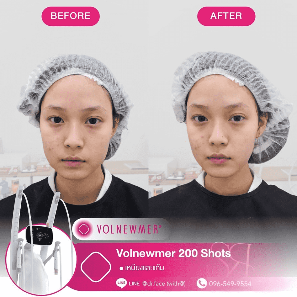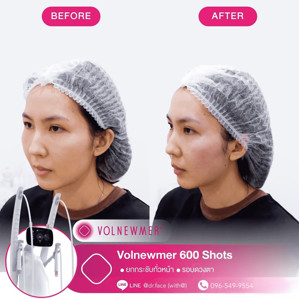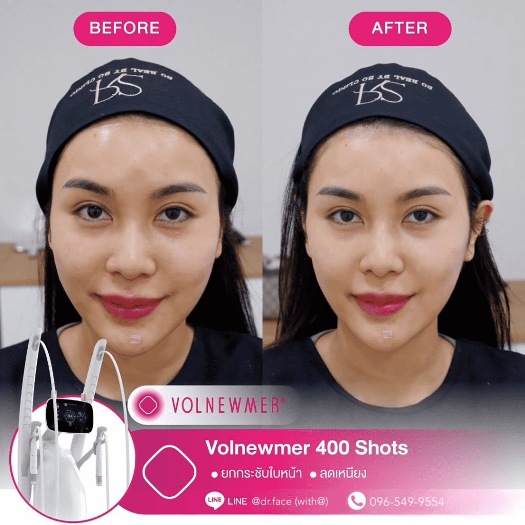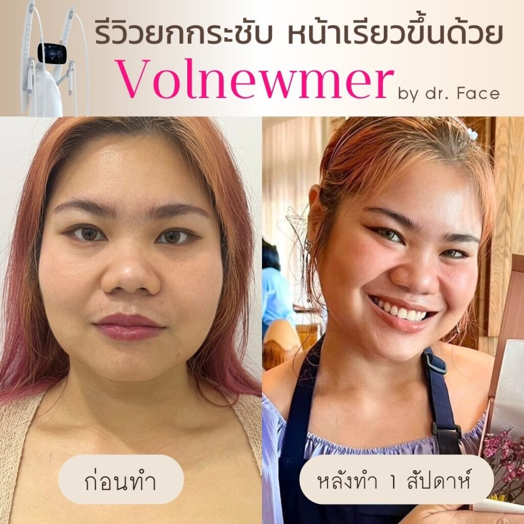 รีดไขมันหน้า หน้าตึงทุกองศา กรอบหน้าชัด ผิวฟู ด้วย By DR.FACE สอบถาม & จองคิว VOLNEWMER คืออะไร Volnewmer เป็นเทคโนโลยี Monopolar RF (Radio Frequency) เพื่อยกกระชับผิว ทำให้ผิวเต่งตึง กระตุ้นคอลลาเจน และเพิ่มวอลลุ่มให้แก่ผิว เพื่อผิวที่ดูอ่อนเยาว์ โดยมาพร้อมกับฟังก์ชันที่ให้ความปลอดภัยและง่ายต่อผู้ใช้งานมากขึ้น นอกจากนี้ ทางคลินิกยังมีบริการ ฉีด Sculptra, Radiesse, Filler และ Ultraformer อีกด้วย สอบถาม & จองคิว VOLNEWMER : New Concept ของเทคโนโลยี Continuous Mono polar RF ด้วยเทคโนโลยีการส่งผ่านพลังงาน Gold Continuous RF Technology (Gold tilting Tip Head) และ Hydro Cooling System เป็นการผสานการทำงานเพื่อส่งผ่านพลังงาน bulk heat Gold RF & Continuous Hydro Cooling ผ่านทิปทองคำ ที่เพิ่มการลงลึกของพลังงานสู่ชั้นเป้าหมายคือ ชั้นหนังแท้ (Dermis) โดยระบบ Hydro Cooling system ช่วยให้พลังงาน Gold RF technology ทำงานได้ดีทั้ง 2 ชั้นผิว โดยที่ ระบบ cooling อื่นๆ ไม่สามารถทำได้เพราะระบบอื่นนั้นให้ความเย็นกับชั้นดังกล่าวมากจนเกินไป เพิ่มประสทธิภาพการลงลึกของพลังงานสู่ใต้ชั้นผิวและประสิทธิภาพการปล่อยความเย็นแบบต่อเนื่อง เพื่อปกป้องผิวชั้นบนให้ปลอดภัย พร้อมไปกับ กระตุ้นการสร้าง collagen type Ill & Type 1 ในชั้น Papillar dermis & ชั้น Reticular dermis ทำให้ผิวมีการอ่อนเยาว์ ยกกระชับ เพิ่มคุณภาพผิว และ เพิ่มปริมาตรชั้นผิว (Volumization) ได้อีกด้วย นวัตกรรมใหม่ล่าสุดด้วยระบบ Hydro-Cooling ระบบให้ความเย็นแบบต่อเนื่อง ประกอบด้วย Tip ทั้งหมด 3 รูปแบบ คือ I Tip 0.25 , F Tip 3.0 และ S Tip 16.0 ให้เลือกใช้กับสรีระบนใบหน้าและร่างกายตามความเหมาะสม I Tip 0.25 F Tip 3.0 S Tip (Body) 16.0 แตกต่างจาก Monopolar ตัวอื่นยังไง ระบบหล่อเย็น มีระบบหล่อเย็นในหัว และมีระบบสั่น 4 step ช่วยปกป้องผิวจากพลังงานความถี่สูงและช่วยลดความเจ็บปวดในระหว่างทำ หัวปรับโค้ง ปรับตามรูปหน้าได้อย่างเหมาะสมแม้ในส่วนที่โค้งเว้าบนใบหน้า การทำงาน ไม่มีการล็อกเวลา สามารถทำเคสได้อย่างต่อเนื่อง เคส Review TIP สลายแฟต กระชับกรอบหน้า หางตายก ลดริ้วรอย กระตุ้นคอลลาเจน สอบถาม & จองคิว Volnewmer เหมาะสำหรับใครบ้าง ผู้ที่ต้องการยกกระชับผิวหน้า ปรับเปลี่ยนรูปหน้า ลดริ้วรอย ลดความหย่อนคล้อยให้แน่นกระชับ ผู้ที่ต้องการฟื้นฟูสภาพผิวให้กระจ่างใส อิ่มฟู และอ่อนเยาว์ เหมาะสำหรับทุกเพศ ทุกวัย โดยเฉพาะวัยรุ่นก็สามารถทำได้ Volnewmer ไม่เหมาะกับใครบ้าง ผู้ที่มีปัญหา ผิวอักเสบ ผิวแพ้ง่าย หรือมีแผลเป็นคีลอยด์ ผู้ที่มีโรคเบาหวาน ลมชัก มีความบกพร่องกับการแข็งตัวของเลือด ผู้ป่วยโรคมะเร็ง (ongoing cancer or malignant diseas สตรีตั้งครรภ์ หรือให้นมบุตร เนื่องจากอาจมีผลข้างเคียง หรือมีความเสี่ยงต่อตัวคุณแม่และทารกได้ ผลลัพธ์จากการทำ Volnewmer คำแนะนำในการใช้บริการ ควรทำบ่อยแค่ไหน เริ่มแรก ควรทำประมาณ 4-6 ครั้ง โดยห่