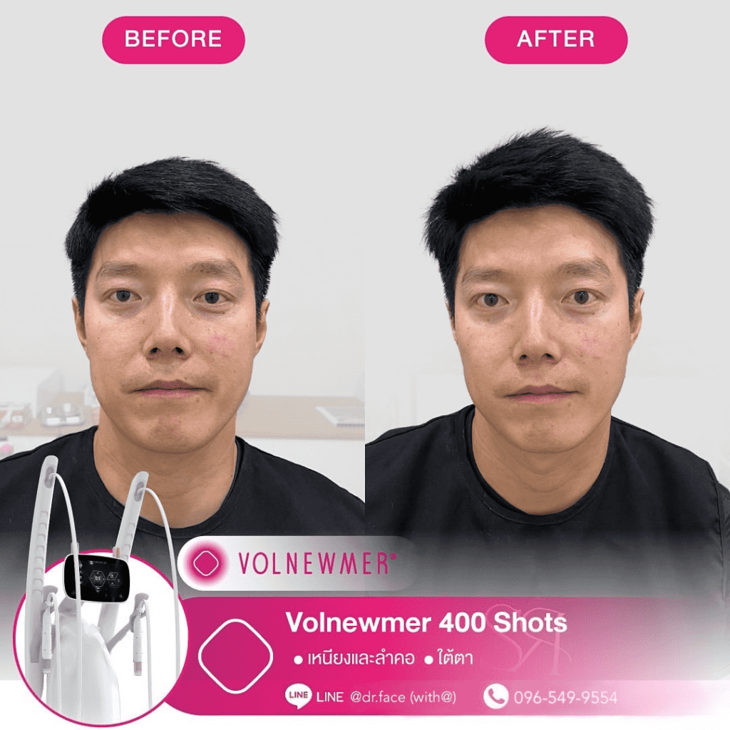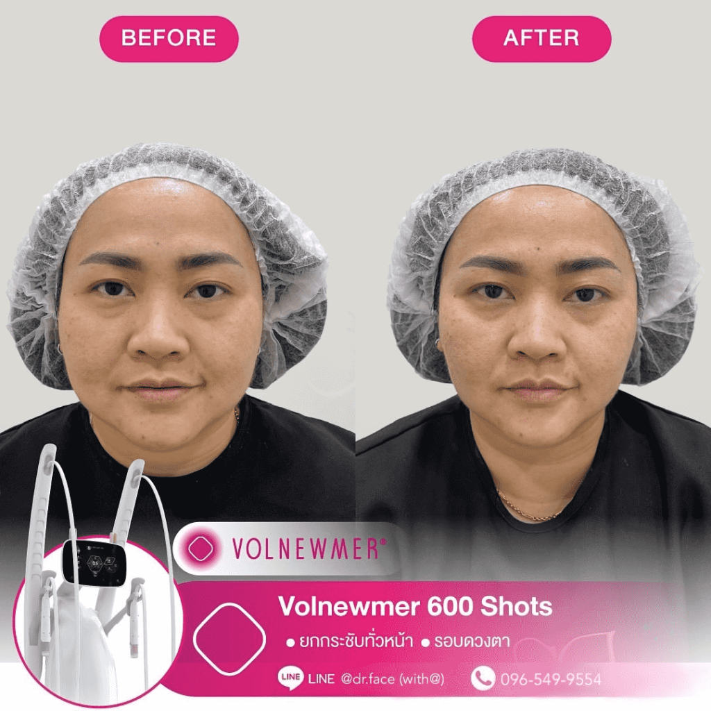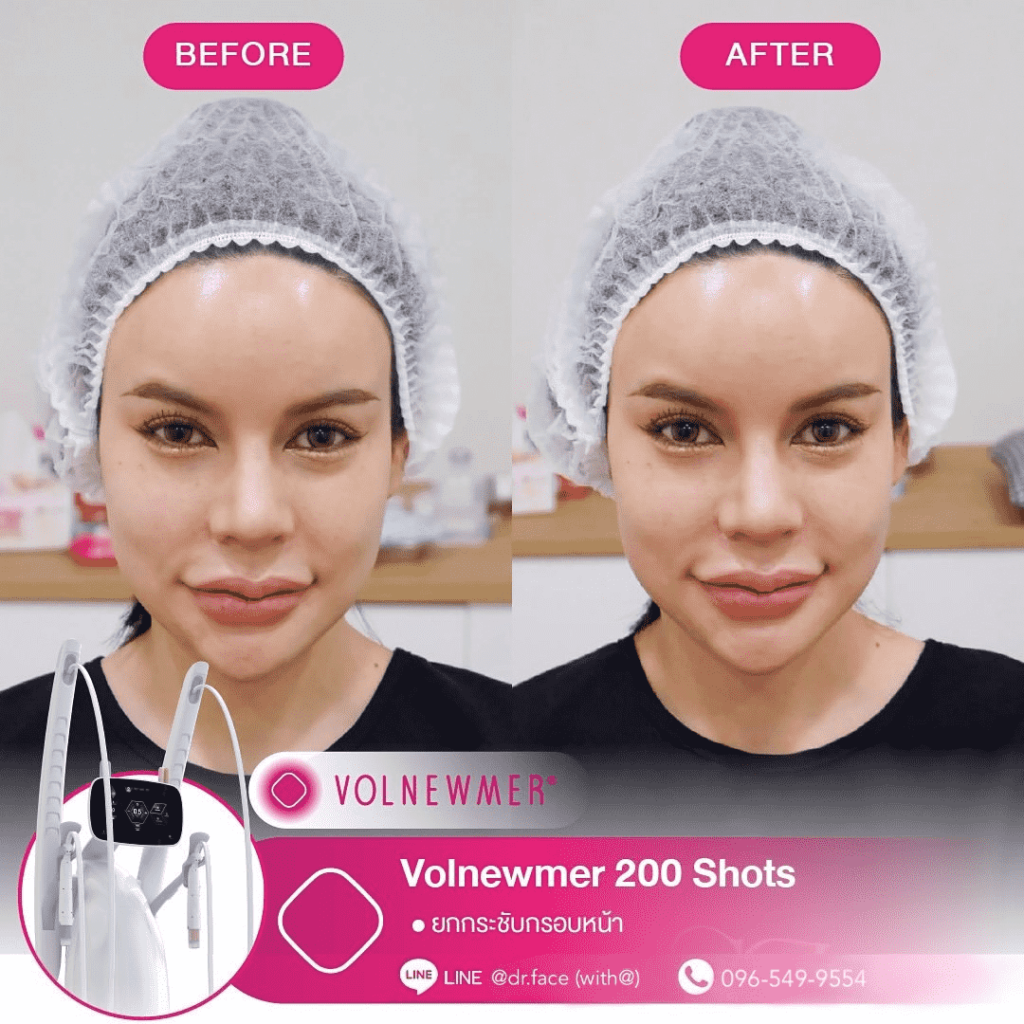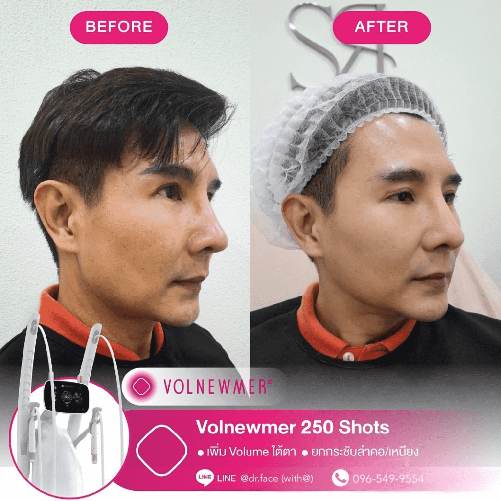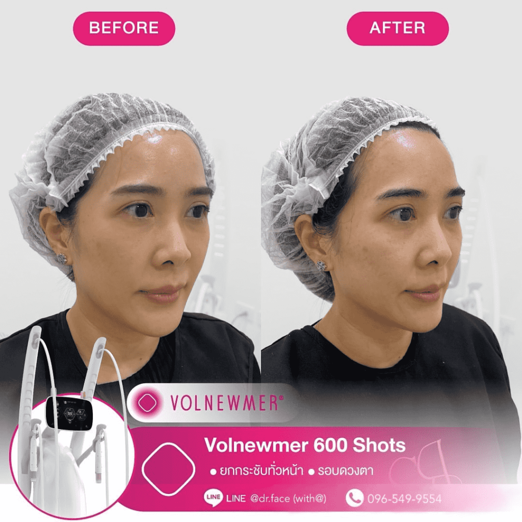 รีดไขมันหน้า หน้าตึงทุกองศา กรอบหน้าชัด ผิวฟู ด้วย By DR.FACE สอบถาม & จองคิว VOLNEWMER คืออะไร Volnewmer เป็นเทคโนโลยี Monopolar RF (Radio Frequency) เพื่อยกกระชับผิว ทำให้ผิวเต่งตึง กระตุ้นคอลลาเจน และเพิ่มวอลลุ่มให้แก่ผิว เพื่อผิวที่ดูอ่อนเยาว์ โดยมาพร้อมกับฟังก์ชันที่ให้ความปลอดภัยและง่ายต่อผู้ใช้งานมากขึ้น นอกจากนี้ ทางคลินิกยังมีบริการ ฉีด Sculptra, Radiesse, Filler และ Ultraformer อีกด้วย สอบถาม & จองคิว VOLNEWMER : New Concept ของเทคโนโลยี Continuous Mono polar RF ด้วยเทคโนโลยีการส่งผ่านพลังงาน Gold Continuous RF Technology (Gold tilting Tip Head) และ Hydro Cooling System เป็นการผสานการทำงานเพื่อส่งผ่านพลังงาน bulk heat Gold RF & Continuous Hydro Cooling ผ่านทิปทองคำ ที่เพิ่มการลงลึกของพลังงานสู่ชั้นเป้าหมายคือ ชั้นหนังแท้ (Dermis) โดยระบบ Hydro Cooling system ช่วยให้พลังงาน Gold RF technology ทำงานได้ดีทั้ง 2 ชั้นผิว โดยที่ ระบบ cooling อื่นๆ ไม่สามารถทำได้เพราะระบบอื่นนั้นให้ความเย็นกับชั้นดังกล่าวมากจนเกินไป เพิ่มประสทธิภาพการลงลึกของพลังงานสู่ใต้ชั้นผิวและประสิทธิภาพการปล่อยความเย็นแบบต่อเนื่อง เพื่อปกป้องผิวชั้นบนให้ปลอดภัย พร้อมไปกับ กระตุ้นการสร้าง collagen type Ill & Type 1 ในชั้น Papillar dermis & ชั้น Reticular dermis ทำให้ผิวมีการอ่อนเยาว์ ยกกระชับ เพิ่มคุณภาพผิว และ เพิ่มปริมาตรชั้นผิว (Volumization) ได้อีกด้วย นวัตกรรมใหม่ล่าสุดด้วยระบบ Hydro-Cooling ระบบให้ความเย็นแบบต่อเนื่อง ประกอบด้วย Tip ทั้งหมด 3 รูปแบบ คือ I Tip 0.25 , F Tip 3.0 และ S Tip 16.0 ให้เลือกใช้กับสรีระบนใบหน้าและร่างกายตามความเหมาะสม I Tip 0.25 F Tip 3.0 S Tip (Body) 16.0 แตกต่างจาก Monopolar ตัวอื่นยังไง ระบบหล่อเย็น มีระบบหล่อเย็นในหัว และมีระบบสั่น 4 step ช่วยปกป้องผิวจากพลังงานความถี่สูงและช่วยลดความเจ็บปวดในระหว่างทำ หัวปรับโค้ง ปรับตามรูปหน้าได้อย่างเหมาะสมแม้ในส่วนที่โค้งเว้าบนใบหน้า การทำงาน ไม่มีการล็อกเวลา สามารถทำเคสได้อย่างต่อเนื่อง เคส Review TIP สลายแฟต กระชับกรอบหน้า หางตายก ลดริ้วรอย กระตุ้นคอลลาเจน สอบถาม & จองคิว Volnewmer เหมาะสำหรับใครบ้าง ผู้ที่ต้องการยกกระชับผิวหน้า ปรับเปลี่ยนรูปหน้า ลดริ้วรอย ลดความหย่อนคล้อยให้แน่นกระชับ ผู้ที่ต้องการฟื้นฟูสภาพผิวให้กระจ่างใส อิ่มฟู และอ่อนเยาว์ เหมาะสำหรับทุกเพศ ทุกวัย โดยเฉพาะวัยรุ่นก็สามารถทำได้ Volnewmer ไม่เหมาะกับใครบ้าง ผู้ที่มีปัญหา ผิวอักเสบ ผิวแพ้ง่าย หรือมีแผลเป็นคีลอยด์ ผู้ที่มีโรคเบาหวาน ลมชัก มีความบกพร่องกับการแข็งตัวของเลือด ผู้ป่วยโรคมะเร็ง (ongoing cancer or malignant diseas สตรีตั้งครรภ์ หรือให้นมบุตร เนื่องจากอาจมีผลข้างเคียง หรือมีความเสี่ยงต่อตัวคุณแม่และทารกได้ ผลลัพธ์จากการทำ Volnewmer คำแนะนำในการใช้บริการ ควรทำบ่อยแค่ไหน เริ่มแรก ควรทำประมาณ 4-6 ครั้ง โดยห่
