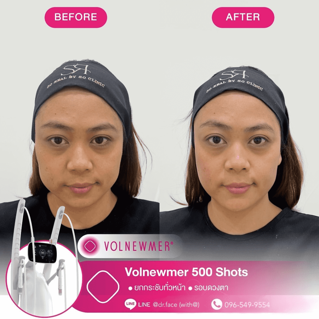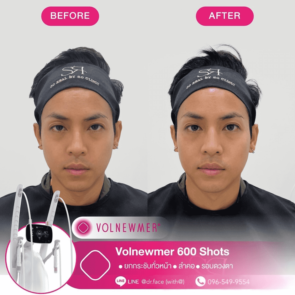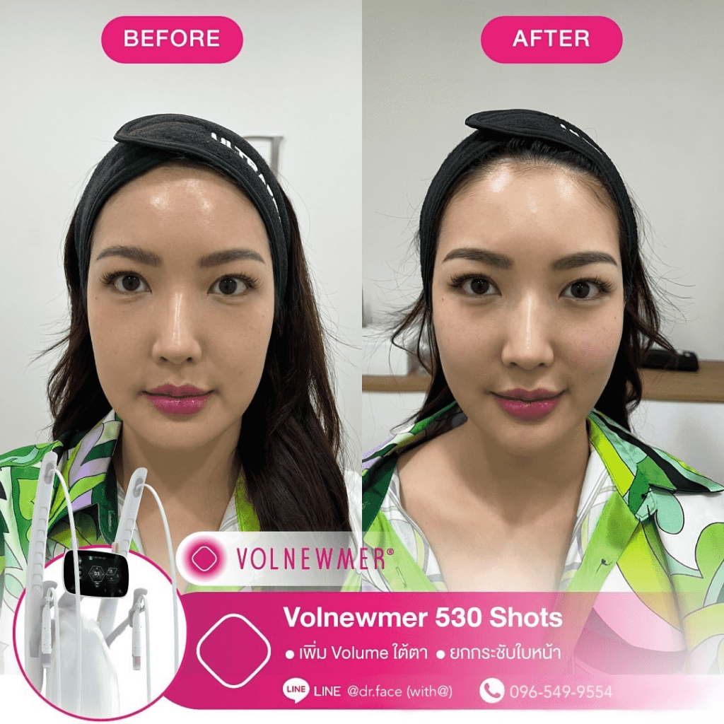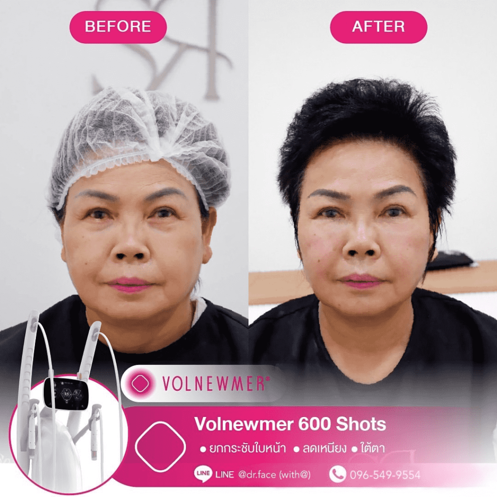 รีดไขมันหน้า หน้าตึงทุกองศา กรอบหน้าชัด ผิวฟู ด้วย By DR.FACE สอบถาม & จองคิว VOLNEWMER คืออะไร Volnewmer เป็นเทคโนโลยี Monopolar RF (Radio Frequency) เพื่อยกกระชับผิว ทำให้ผิวเต่งตึง กระตุ้นคอลลาเจน และเพิ่มวอลลุ่มให้แก่ผิว เพื่อผิวที่ดูอ่อนเยาว์ โดยมาพร้อมกับฟังก์ชันที่ให้ความปลอดภัยและง่ายต่อผู้ใช้งานมากขึ้น นอกจากนี้ ทางคลินิกยังมีบริการ ฉีด Sculptra, Radiesse, Filler และ Ultraformer อีกด้วย สอบถาม & จองคิว VOLNEWMER : New Concept ของเทคโนโลยี Continuous Mono polar RF ด้วยเทคโนโลยีการส่งผ่านพลังงาน Gold Continuous RF Technology (Gold tilting Tip Head) และ Hydro Cooling System เป็นการผสานการทำงานเพื่อส่งผ่านพลังงาน bulk heat Gold RF & Continuous Hydro Cooling ผ่านทิปทองคำ ที่เพิ่มการลงลึกของพลังงานสู่ชั้นเป้าหมายคือ ชั้นหนังแท้ (Dermis) โดยระบบ Hydro Cooling system ช่วยให้พลังงาน Gold RF technology ทำงานได้ดีทั้ง 2 ชั้นผิว โดยที่ ระบบ cooling อื่นๆ ไม่สามารถทำได้เพราะระบบอื่นนั้นให้ความเย็นกับชั้นดังกล่าวมากจนเกินไป เพิ่มประสทธิภาพการลงลึกของพลังงานสู่ใต้ชั้นผิวและประสิทธิภาพการปล่อยความเย็นแบบต่อเนื่อง เพื่อปกป้องผิวชั้นบนให้ปลอดภัย พร้อมไปกับ กระตุ้นการสร้าง collagen type Ill & Type 1 ในชั้น Papillar dermis & ชั้น Reticular dermis ทำให้ผิวมีการอ่อนเยาว์ ยกกระชับ เพิ่มคุณภาพผิว และ เพิ่มปริมาตรชั้นผิว (Volumization) ได้อีกด้วย นวัตกรรมใหม่ล่าสุดด้วยระบบ Hydro-Cooling ระบบให้ความเย็นแบบต่อเนื่อง ประกอบด้วย Tip ทั้งหมด 3 รูปแบบ คือ I Tip 0.25 , F Tip 3.0 และ S Tip 16.0 ให้เลือกใช้กับสรีระบนใบหน้าและร่างกายตามความเหมาะสม I Tip 0.25 F Tip 3.0 S Tip (Body) 16.0 แตกต่างจาก Monopolar ตัวอื่นยังไง ระบบหล่อเย็น มีระบบหล่อเย็นในหัว และมีระบบสั่น 4 step ช่วยปกป้องผิวจากพลังงานความถี่สูงและช่วยลดความเจ็บปวดในระหว่างทำ หัวปรับโค้ง ปรับตามรูปหน้าได้อย่างเหมาะสมแม้ในส่วนที่โค้งเว้าบนใบหน้า การทำงาน ไม่มีการล็อกเวลา สามารถทำเคสได้อย่างต่อเนื่อง เคส Review TIP สลายแฟต กระชับกรอบหน้า หางตายก ลดริ้วรอย กระตุ้นคอลลาเจน สอบถาม & จองคิว Volnewmer เหมาะสำหรับใครบ้าง ผู้ที่ต้องการยกกระชับผิวหน้า ปรับเปลี่ยนรูปหน้า ลดริ้วรอย ลดความหย่อนคล้อยให้แน่นกระชับ ผู้ที่ต้องการฟื้นฟูสภาพผิวให้กระจ่างใส อิ่มฟู และอ่อนเยาว์ เหมาะสำหรับทุกเพศ ทุกวัย โดยเฉพาะวัยรุ่นก็สามารถทำได้ Volnewmer ไม่เหมาะกับใครบ้าง ผู้ที่มีปัญหา ผิวอักเสบ ผิวแพ้ง่าย หรือมีแผลเป็นคีลอยด์ ผู้ที่มีโรคเบาหวาน ลมชัก มีความบกพร่องกับการแข็งตัวของเลือด ผู้ป่วยโรคมะเร็ง (ongoing cancer or malignant diseas สตรีตั้งครรภ์ หรือให้นมบุตร เนื่องจากอาจมีผลข้างเคียง หรือมีความเสี่ยงต่อตัวคุณแม่และทารกได้ ผลลัพธ์จากการทำ Volnewmer คำแนะนำในการใช้บริการ ควรทำบ่อยแค่ไหน เริ่มแรก ควรทำประมาณ 4-6 ครั้ง โดยห่